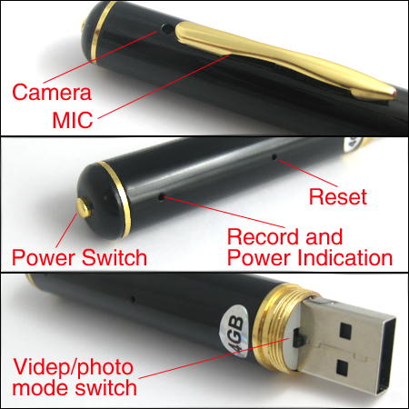 Propisovací tužka obsahuje miniaturní kameru a vestavěný mikrofon. Umožňuje skryté nahrávání zvuku i obrazu a následné přehrávání v osobním PC.