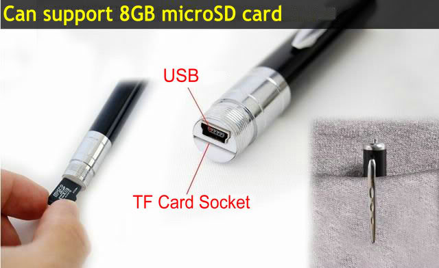 Propisovací tužka obsahuje miniaturní kameru a vestavěný mikrofon. Umožňuje skryté nahrávání zvuku i obrazu a následné přehrávání v osobním PC.